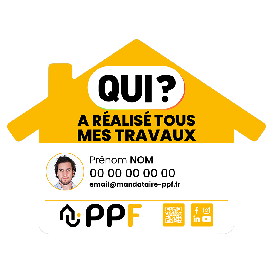 Mettez en avant votre savoir-faire avec un panneau de chantier en forme de maison. Original et professionnel, il attire le regard et valorise vos projets sur le terrain.