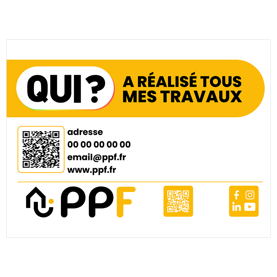 Affichez votre expertise avec un panneau de chantier visible et professionnel. Idéal pour valoriser vos réalisations et attirer de nouveaux clients. Un support incontournable pour renforcer votre image et votre notoriété sur le terrain !