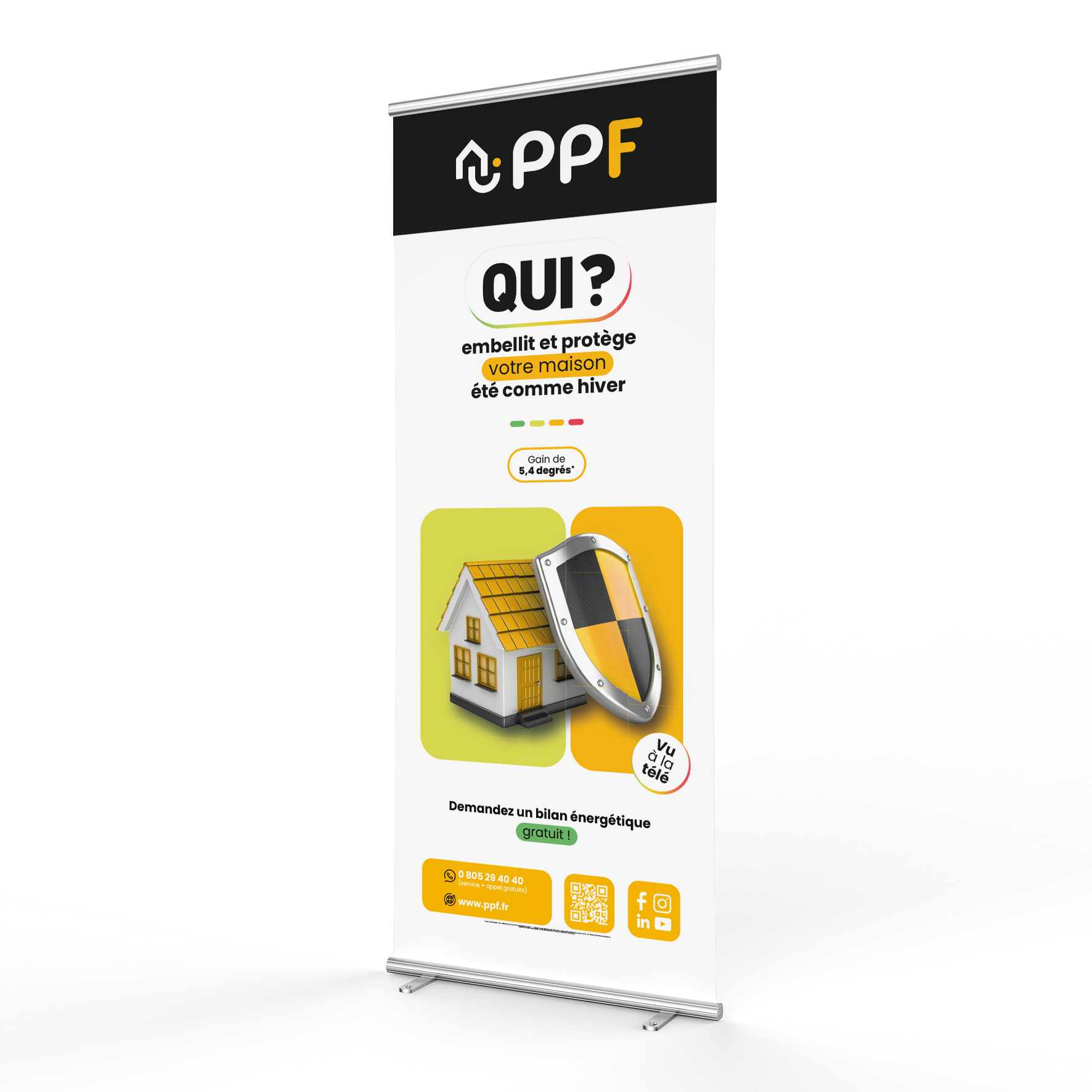 Renforcez votre communication avec un roll-up dédié à l’hydrofugation et à la protection des façades. Un support visuel impactant pour mettre en avant les avantages thermiques et esthétiques de cette solution tout au long de l’année. Idéal pour les salons et points de vente, il est livré avec une sacoche de transport pour une installation simple et rapide.