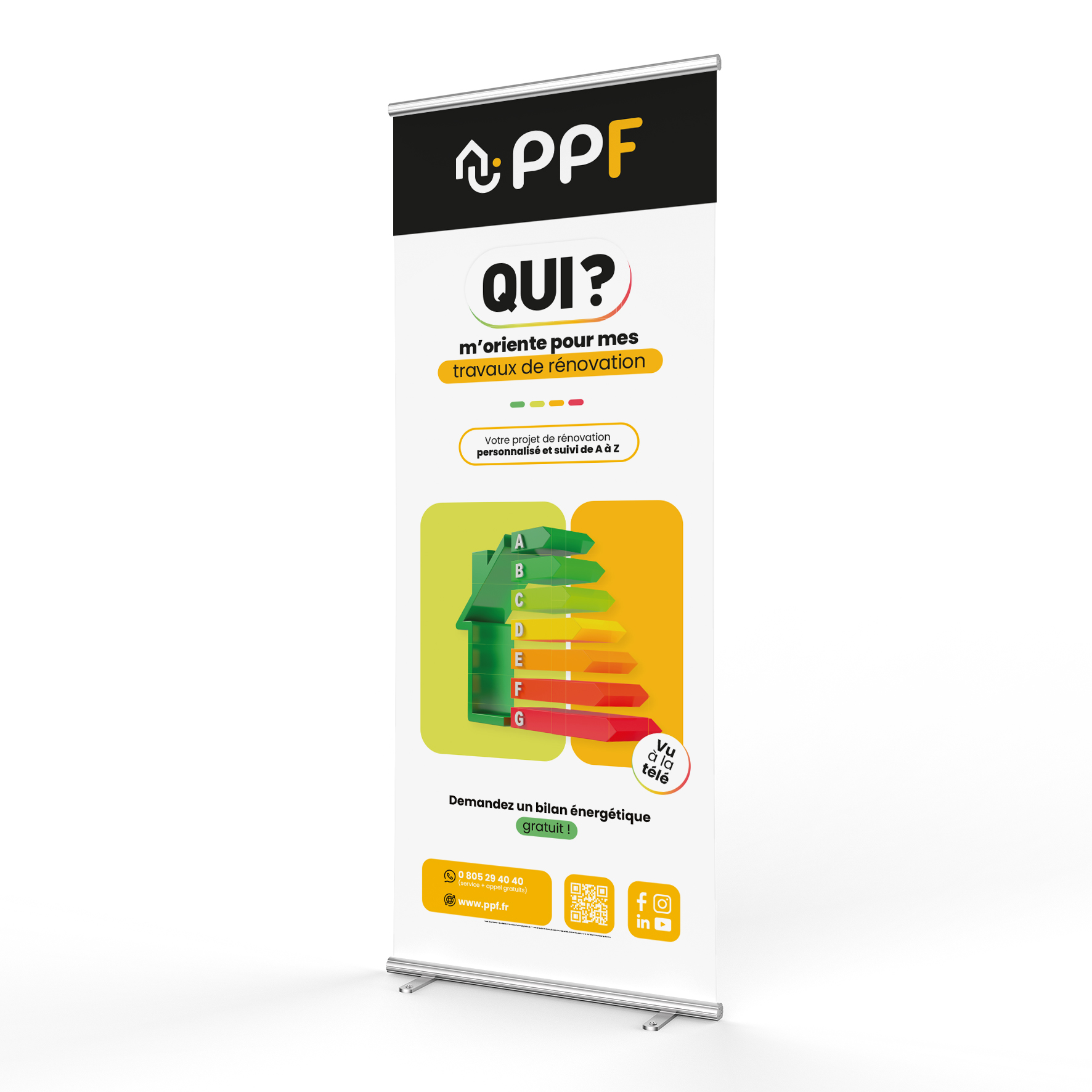 Renforcez votre communication avec un roll-up dédié au Diagnostic de Performance Énergétique (DPE). Un support visuel impactant pour informer vos clients sur l’optimisation de leur rénovation énergétique et l’amélioration de leur habitat. Idéal pour les salons et points de vente, il est livré avec une sacoche de transport pour une installation simple et rapide.