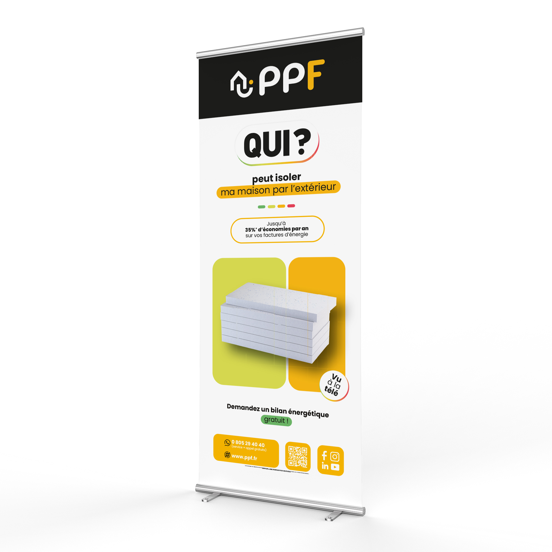 Renforcez votre communication avec un roll-up dédié à l’isolation thermique par l’extérieur (ITE). Un support visuel impactant pour mettre en avant les économies d’énergie réalisables et l’amélioration du confort thermique des habitations. Idéal pour les salons et points de vente, il est livré avec une sacoche de transport pour une installation simple et rapide.