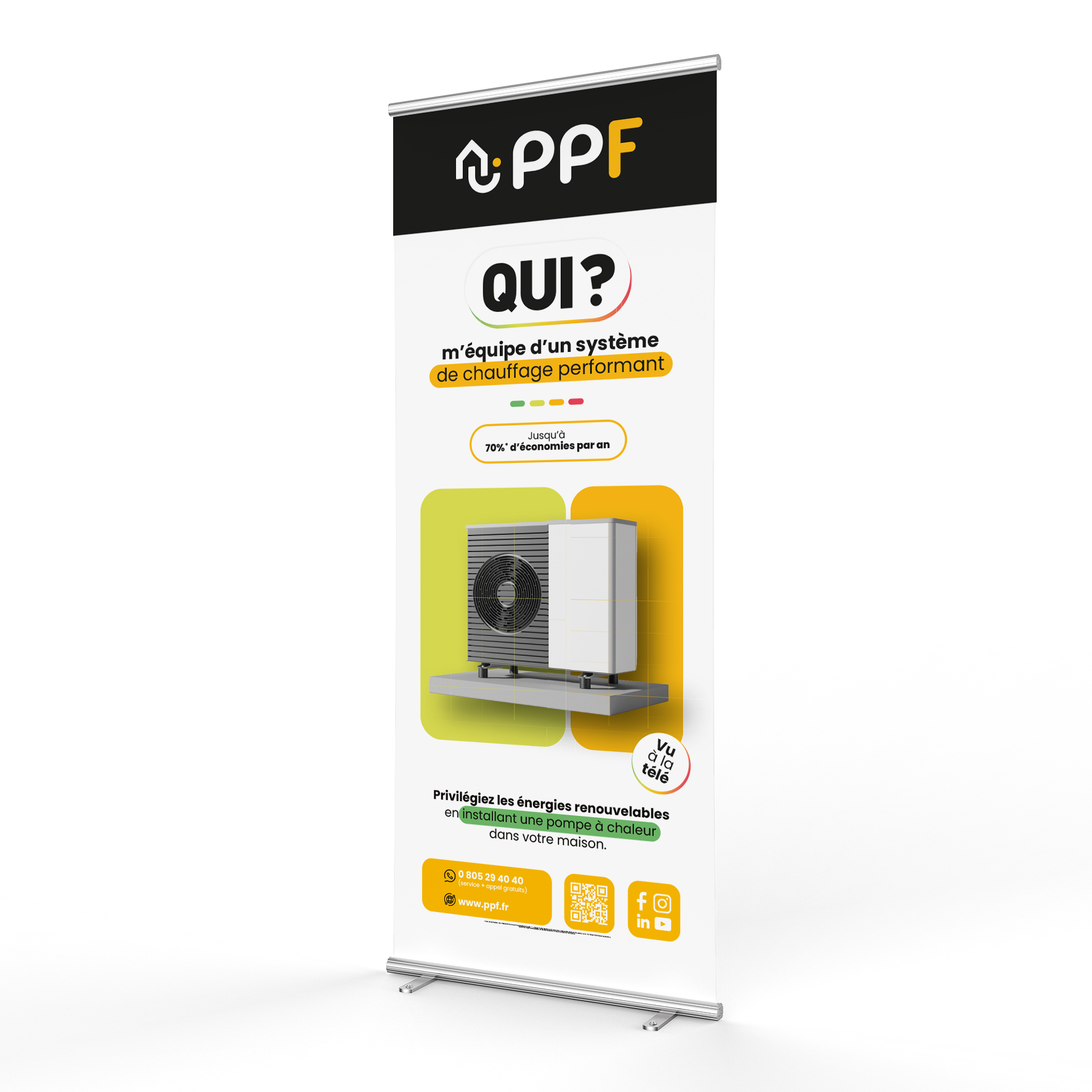 Renforcez votre communication avec un roll-up dédié aux pompes à chaleur. Un support visuel impactant pour promouvoir une solution de chauffage performante et économe en énergie. Idéal pour les salons et points de vente, il est livré avec une sacoche de transport pour une installation simple et rapide.