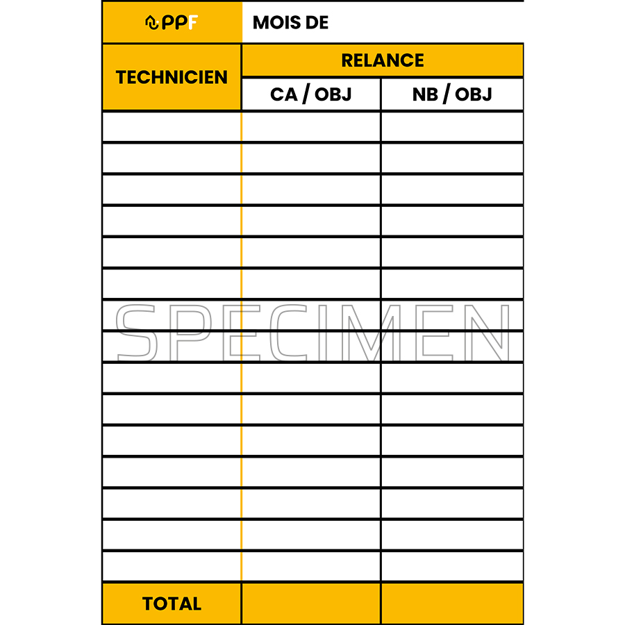 Pensé pour les équipes terrain étendues, ce tableau effaçable en PVC 5 mm permet de suivre les relances de 15 techniciens de façon claire et centralisée. Idéal pour fluidifier la coordination et ne rien laisser passer.