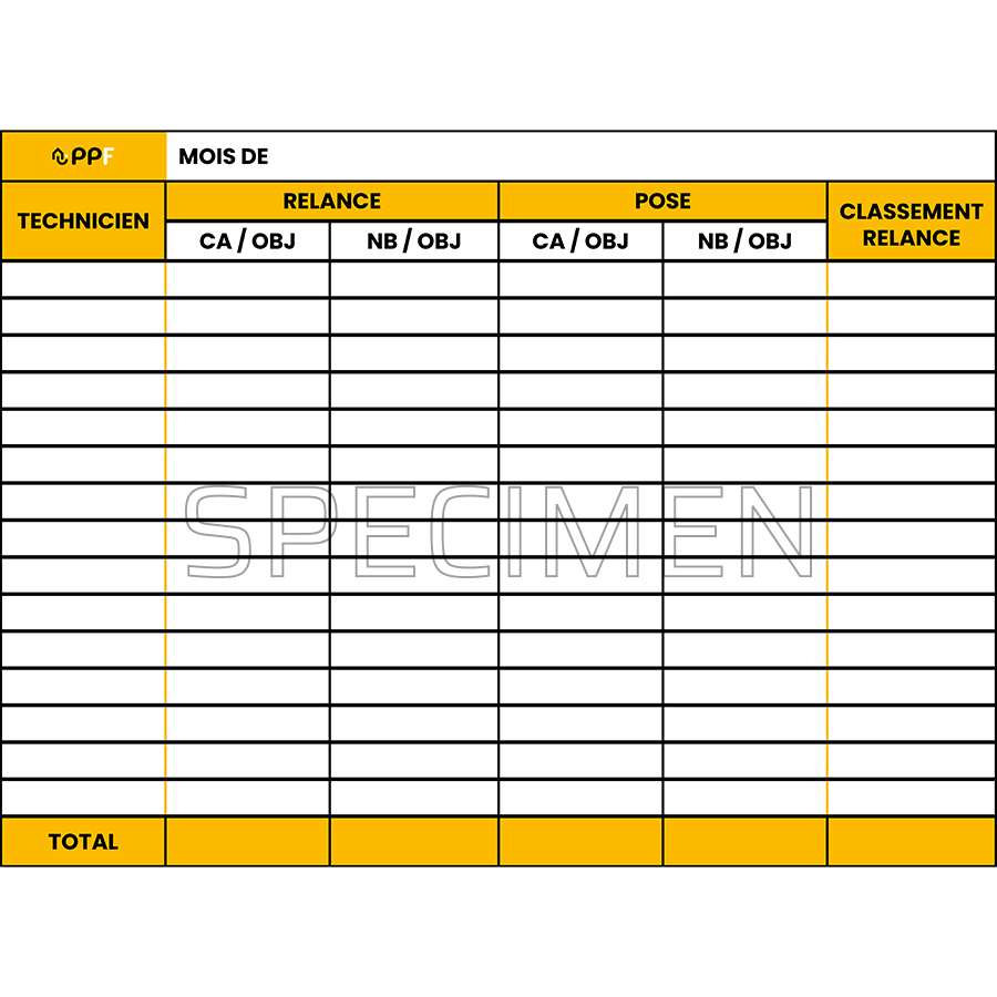 Tableau de relance 15 techniciens