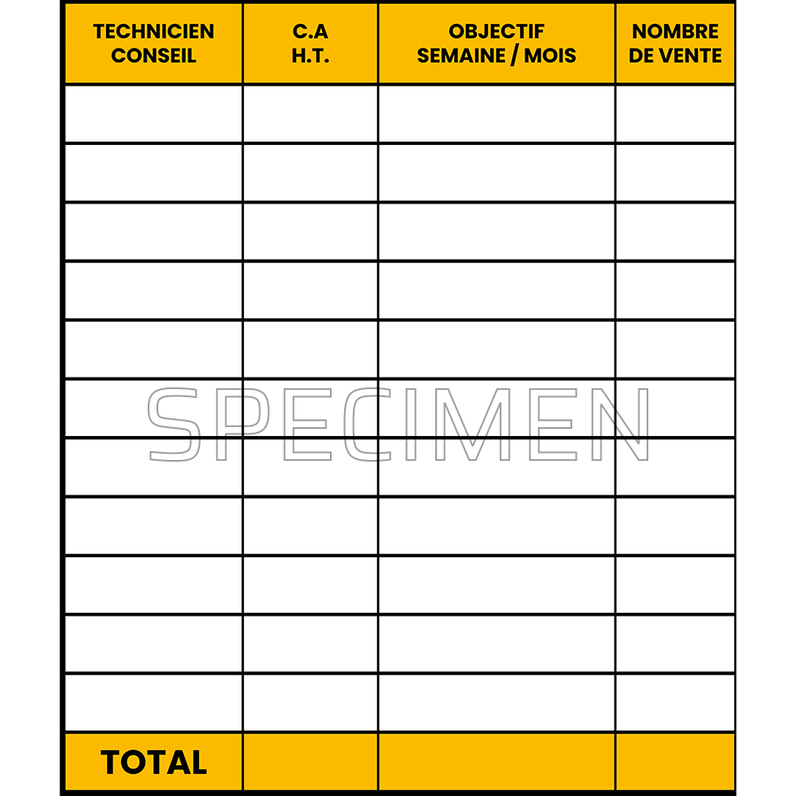Pilotez votre activité commerciale d’un seul coup d’œil ! Ce tableau effaçable en PVC 5 mm vous aide à visualiser vos prospects, opportunités et actions en cours. Un outil clair, pratique et durable pour booster vos performances.
